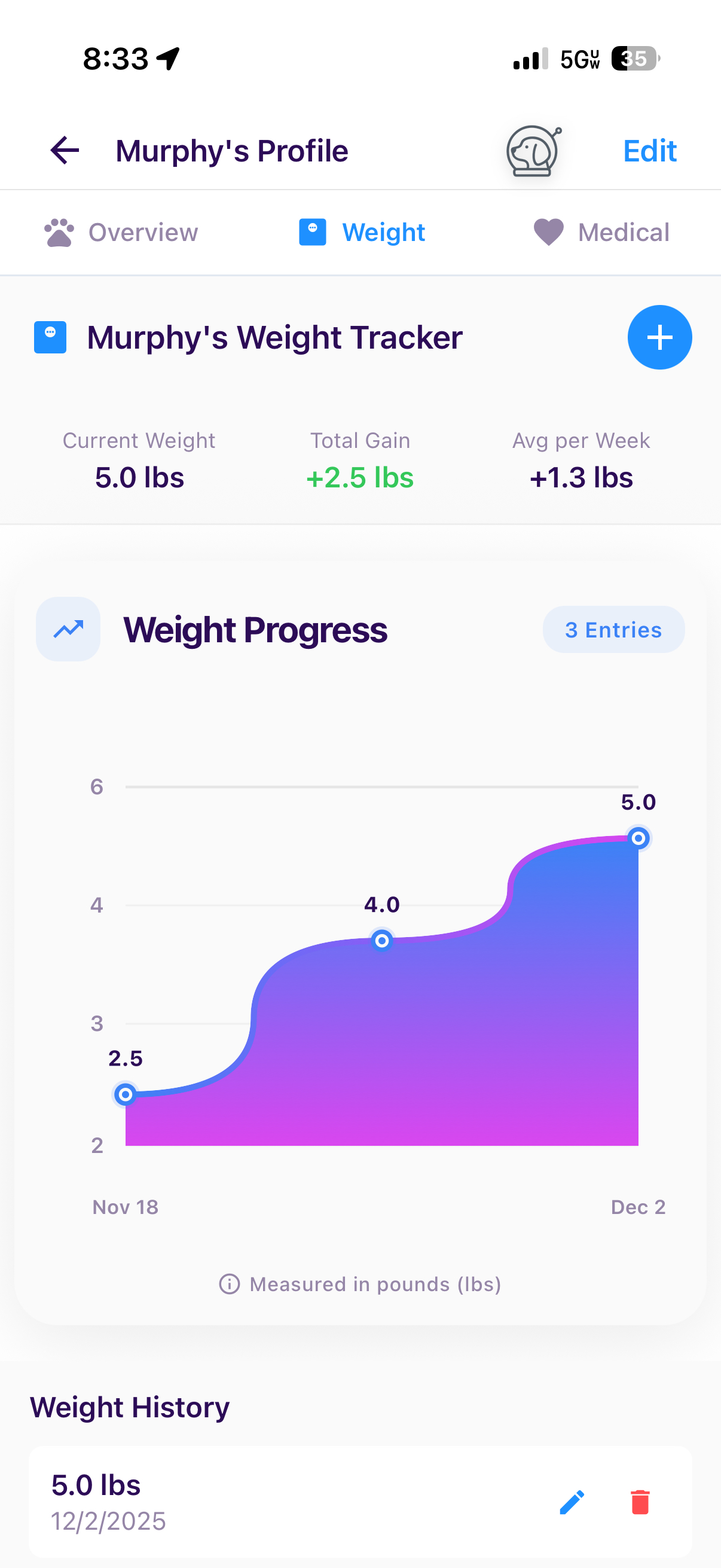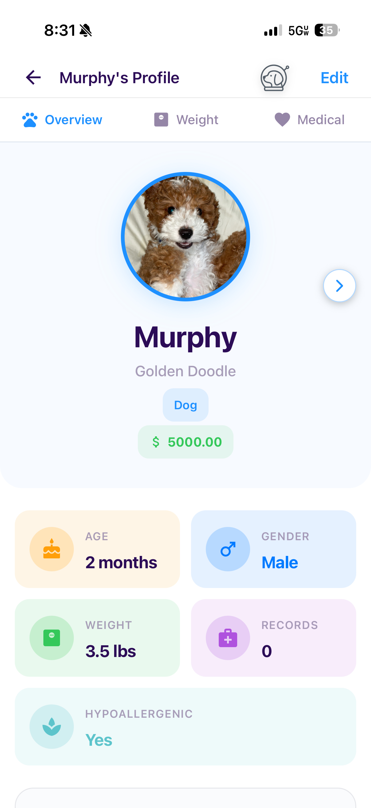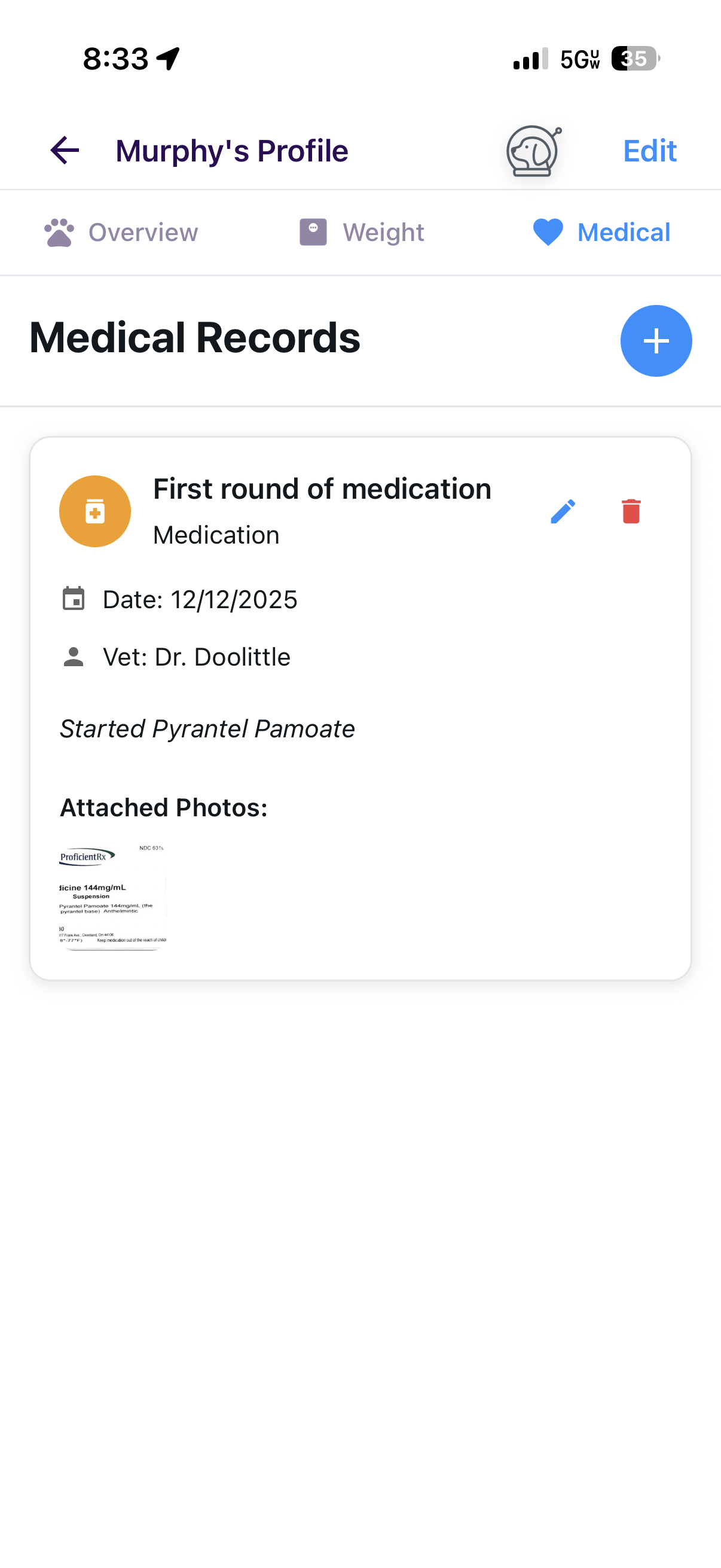 Your pet's timeline includes medical records, health notes, and growth tracking. Vaccinations, vet visits, weight updates, and milestones are logged in one place, giving you a clear and reliable health history from day one.