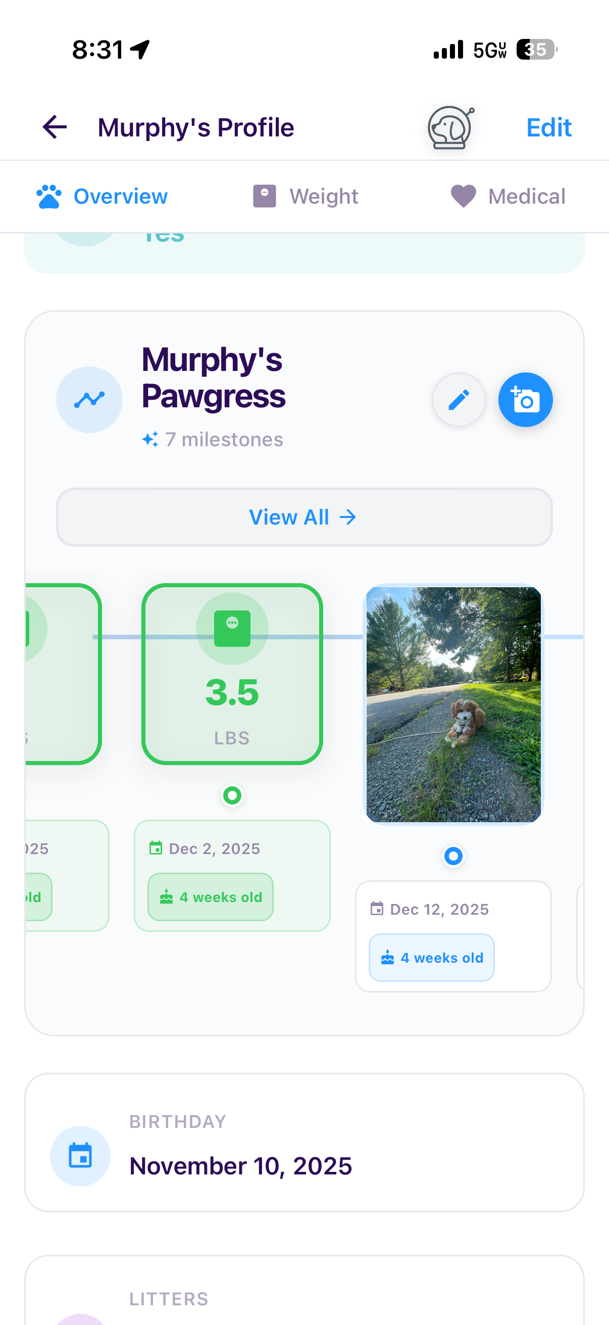 After pickup, the timeline stays with you. Pawgress becomes a one-stop home for your pet's health records, milestones, and memories. You can continue logging medical updates, tracking growth, and adding photos throughout your pet's life. Whether you're visiting the vet or looking back on memories, everything about your pet lives in one organized place.